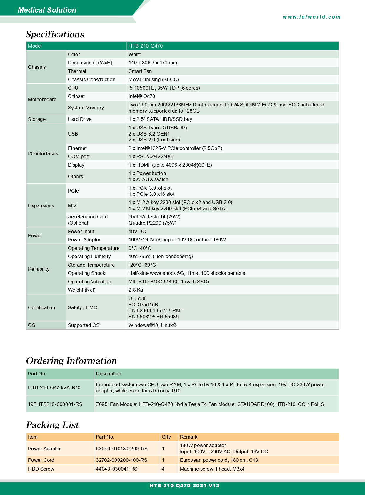 產品敘述: » 10th Gen Intel® Xeon® & Core™ processor platform with Intel® Q470 chipset » PCIe x4 slot supports capture cards or other applications » PCIe x16 slot supports NVIDIA GPU Acceleration Card